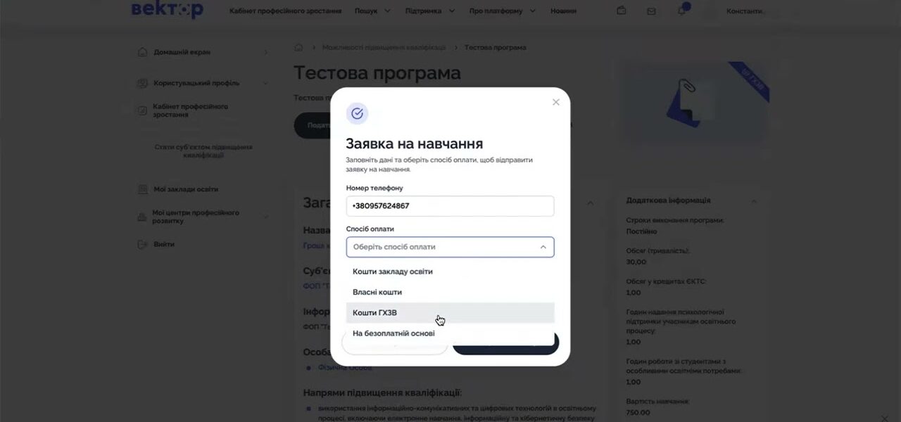Відтепер держава нараховуватиме фіксовану суму коштів — 1500 грн — безпосередньо на віртуальний рахунок педагогів, за які вони зможуть обирати курси підвищення кваліфікації на «Векторі».