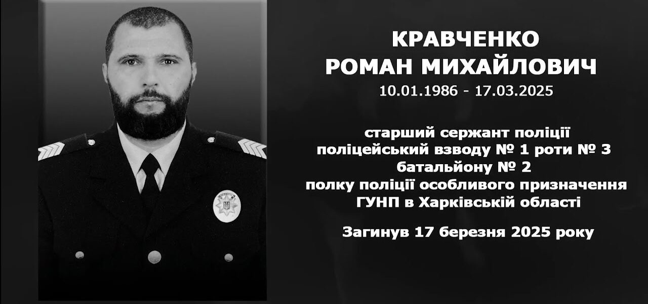 Поліцейський Роман Кравченко, перебуваючи у складі зведеного загону поліції, виконував бойові завдання на Харківському напрямку. 17 березня минулого року під час ворожого обстрілу із застосуванням реактивних систем залпового вогню та скидів із безпілотника боєць отримав смертельні поранення.