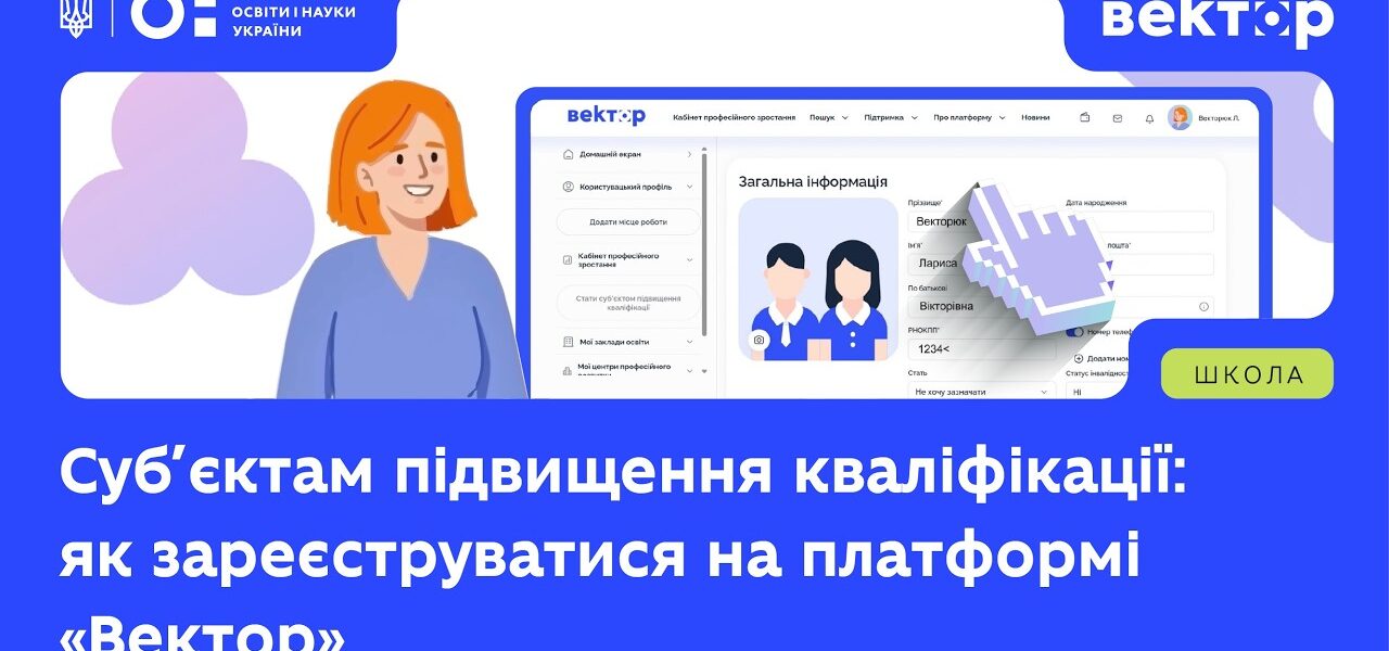 У відео детально розповідаємо, як суб’єкту підвищення кваліфікації зареєструватись на платформі «Вектор», як завантажити свої програми і подати заявку на участь у пілоті політики «Гроші ходять за вчителем».