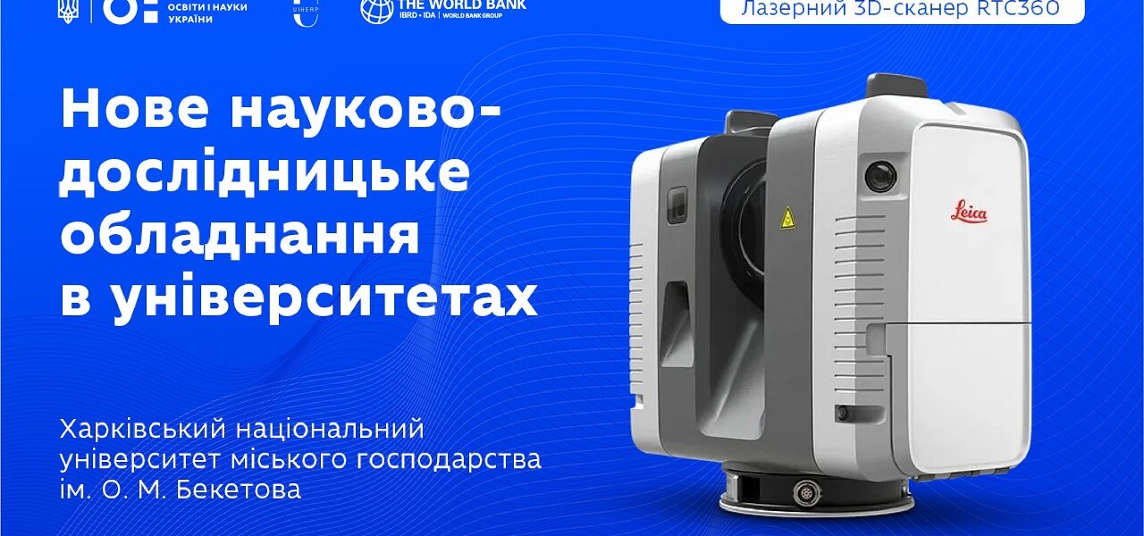 Один із закладів, який уже отримав нове обладнання в межах проєкту, — Харківський національний університет міського господарства імені О. М. Бекетова. Університету передано лазерний 3D-сканер Leica RTC360 — інструмент для збирання та документування просторових даних у тривимірному форматі. Завдяки йому студенти створюють високоточні моделі будівель і споруд, а науковці проводять дослідження на замовлення реальних партнерів — від міської ради до Укрзалізниці.